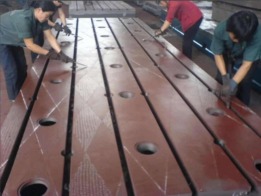 我公司经验丰富的铲刮工十余名技术实力雄厚,精度高,耐磨性好,提供铸铁平台维修铲刮服务,铸铁平台铲刮工艺复杂,因为其铸铁平台铲刮质量直接影响着工作台面的平面度、精度等,是铸铁平台生产过程的重要环节之—,也是精度平面度的保证工序。
