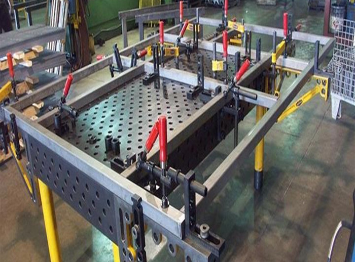 三维柔性焊接平台工装的主要特点就是从平台到附件都是标准孔没有传统的螺纹或t型槽,配合快速锁销就能使装配变得更加快捷方便,定位更精确。