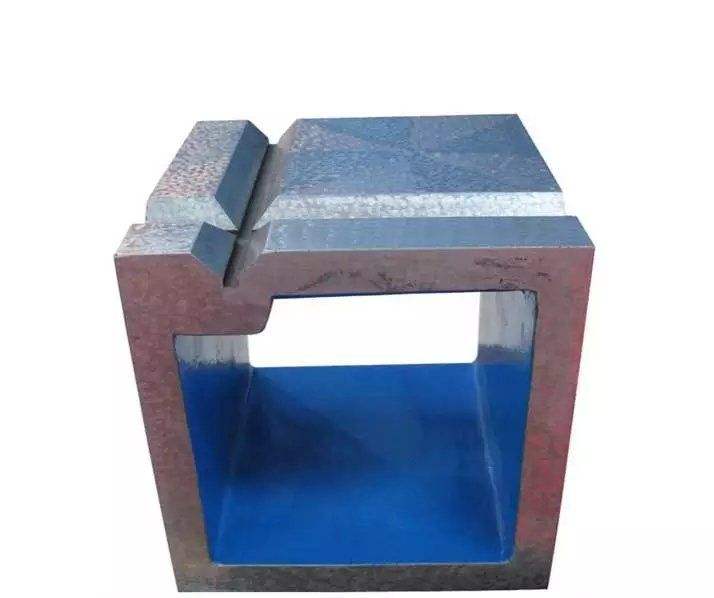 铸铁方箱用于零部件的平行度、垂直度等的检验和划线。方箱是用铸铁或钢材制成的具体6个工作面的空腔正方体,其中一个工作面上有V型槽。
